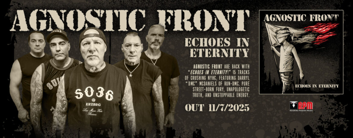 November 7-én a Reigning Phoenix Music gondozásában jelenik meg a New York-i hardcore legenda Agnostic Front új albuma, az Echoes In Eternity. A lemez producere Mike Dijan (Cold Front, Sick Of It All) volt, a keverést pedig Zeuss (Hatebreed, Death Before Dishonor) végezte el.